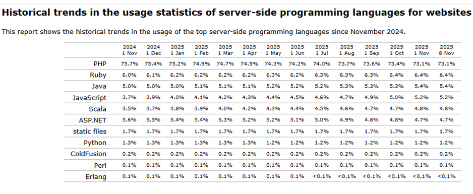 ちなみにWebでのRubyと言えば、フレームワークであるRuby on Railsが使用されることが多いです。PHPに次ぐシェアを持つこともありますので、2つ目の言語として検討される方は、是非、Ruby on Railsの学習を検討してみてはいかがでしょうか?